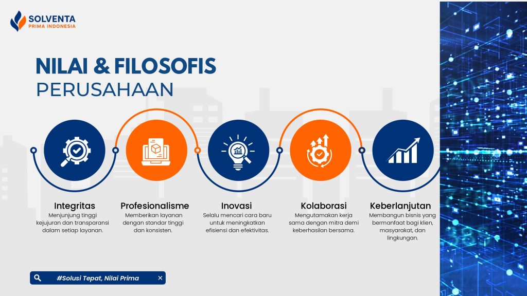 Melalui layanan yang mengedepankan profesionalisme dan integritas, PT Solventa Prima Indonesia siap memberikan solusi terbaik yang sesuai dengan kontrak kerja sama yang disepakati.